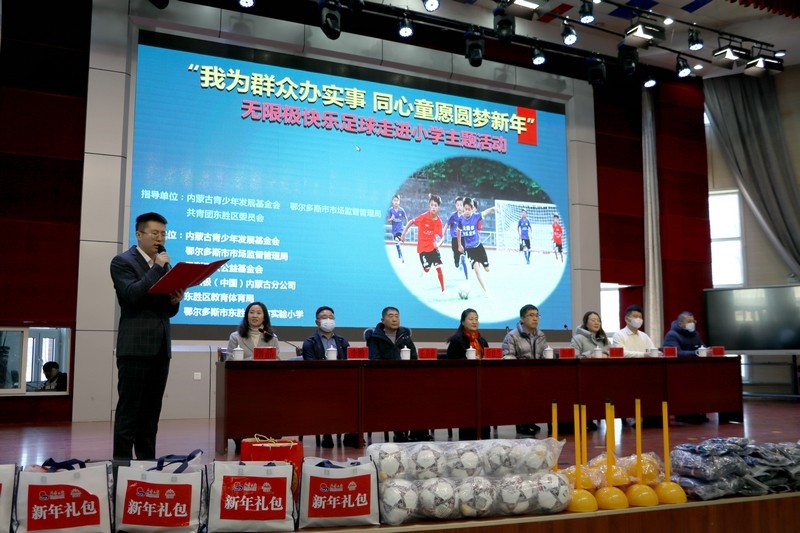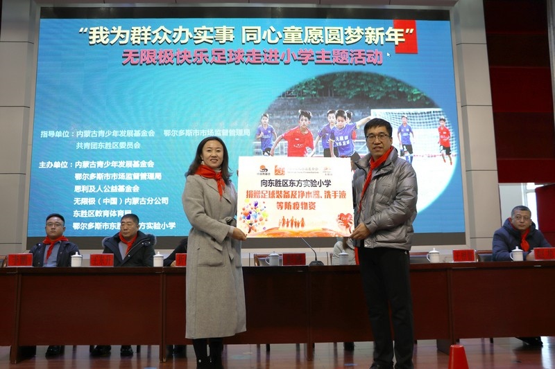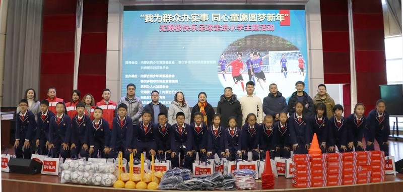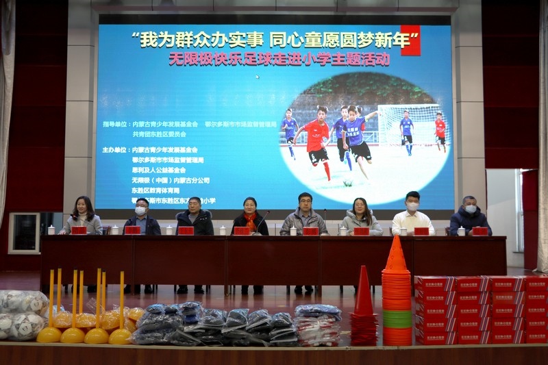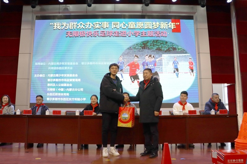 北疆新聞網(wǎng)、北疆新聞APP、北疆云消息 12月3日,思利及人公益基金會(huì)、無(wú)限極(中國(guó))內(nèi)蒙古分公司攜手內(nèi)蒙古青少年發(fā)展基金會(huì)、鄂爾多斯市市場(chǎng)監(jiān)督管理局、共青團(tuán)東勝區(qū)委員會(huì)、東勝區(qū)教育體育局、無(wú)限極內(nèi)蒙古志愿者協(xié)會(huì)走進(jìn)內(nèi)蒙古鄂爾多斯市東勝區(qū)東方實(shí)驗(yàn)小學(xué),開展“我為群眾辦實(shí)事 同心童愿圓夢(mèng)新年”無(wú)限極快樂(lè)足球慰問(wèn)公益活動(dòng)。為學(xué)校的孩子們送上了一份特別的禮物,由“無(wú)限極快樂(lè)足球”公益項(xiàng)目提供的足球、球服、球鞋、繞桿、訓(xùn)練桶等足球裝備和訓(xùn)練器材。孩子們?cè)谑盏骄栀?zèng)后,露出開心燦爛的笑容。