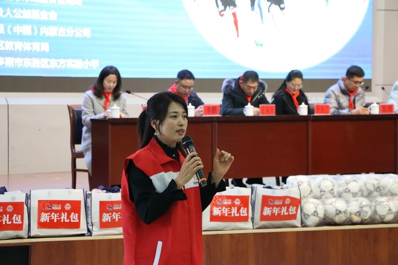 鄂爾多斯市市場(chǎng)監(jiān)督管理局副局長(zhǎng)折桂蘭在公益活動(dòng)上致辭,希望同學(xué)們不要單一地關(guān)注學(xué)習(xí),而要德、智、體、美全面發(fā)展,提升綜合能力,同時(shí)用優(yōu)異的成績(jī)來(lái)回報(bào)每一個(gè)愛(ài)心人士的無(wú)私奉獻(xiàn)與幫助。也希望同學(xué)們分配好時(shí)間,能夠熱愛(ài)足球,熱愛(ài)自已感興趣的運(yùn)動(dòng)、愛(ài)好,這會(huì)讓生活更加多姿多彩,也希望同學(xué)們今后能多方面為國(guó)家貢獻(xiàn)自己的力量,成為各行業(yè)里的優(yōu)秀人才。