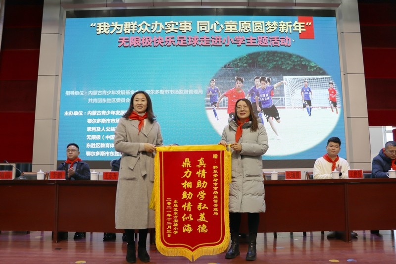 活動(dòng)現(xiàn)場(chǎng),鄂爾多斯市市場(chǎng)監(jiān)督管理局還對(duì)從四川內(nèi)江師范學(xué)院遠(yuǎn)道而來(lái)進(jìn)行足球支教的老師進(jìn)行了慰問(wèn),感謝他不遠(yuǎn)千里來(lái)到學(xué)校,奉獻(xiàn)愛(ài)心。