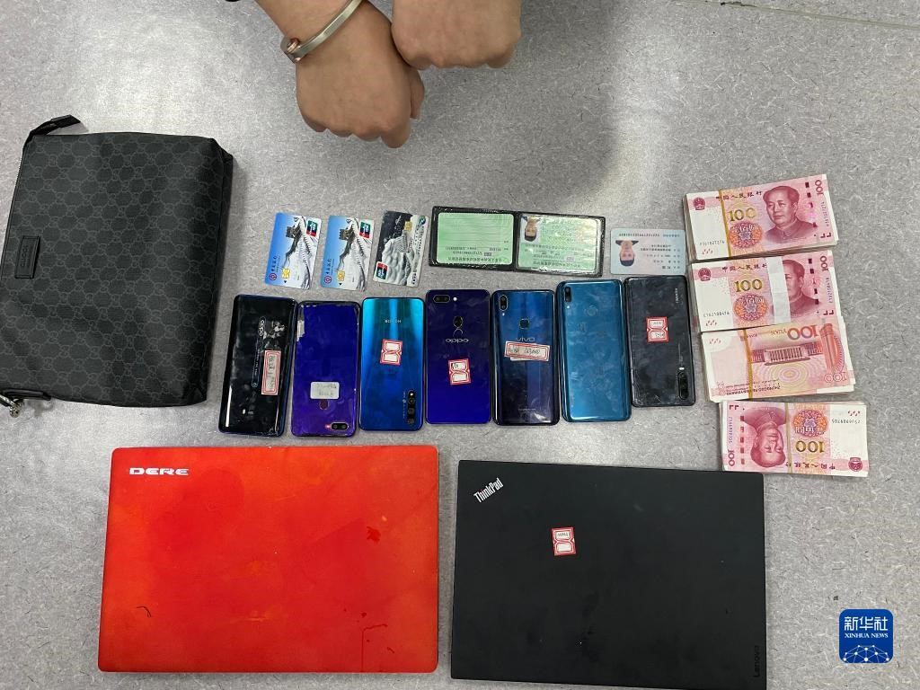 這是民警在現(xiàn)場(chǎng)查獲的部分犯罪工具及涉案資金。(受訪單位供圖)