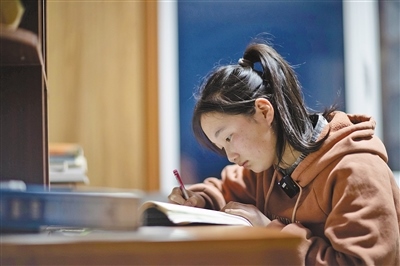 女兒在家中寫作業(yè)。