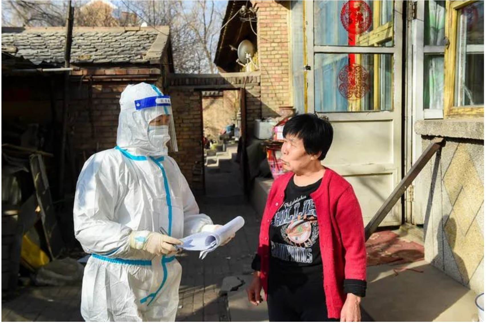 ↑3月6日,在呼和浩特市賽罕區(qū)東瓦窯社區(qū),網(wǎng)格員(右一)輔助醫(yī)務(wù)工作者為次密接群眾上門做核酸檢測。