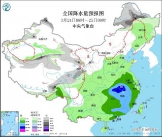 圖2 全國降水量預(yù)報(bào)圖(3月24日08時(shí)-25日08時(shí))
