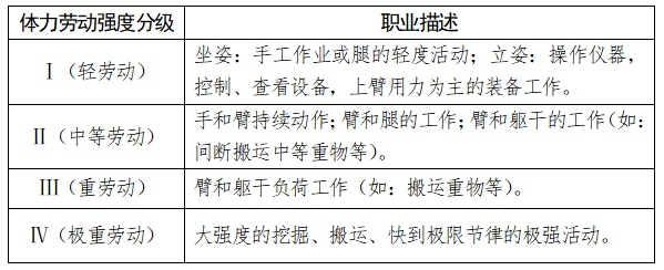 表2常見職業(yè)體力勞動強(qiáng)度分級表