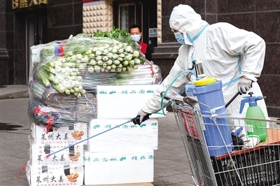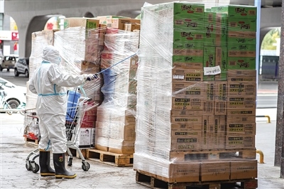 據(jù)了解,家家悅確保每日運(yùn)送新鮮瓜果外,倉(cāng)庫(kù)里還備齊了日用品、零食等居民生活必備品。每天一早,倉(cāng)庫(kù)工作人員會(huì)按照線下各實(shí)體店所需進(jìn)行選品,分揀員認(rèn)真分揀,運(yùn)輸人員按時(shí)送達(dá)。商品抵達(dá)實(shí)體店后,實(shí)體店工作人員對(duì)運(yùn)貨車輛及所運(yùn)物品進(jìn)行消殺,再上架供超市工作人員按照訂單進(jìn)行分包,收銀臺(tái)工作人員掃碼打印出支付賬單,由配送員送到居民手中。