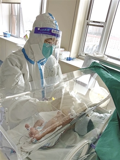 寶寶出生3天后,父母尚未轉(zhuǎn)陰還在隔離病區(qū)住院。在寶寶救治過程中,醫(yī)護(hù)人員當(dāng)起“臨時(shí)媽媽”,24小時(shí)不間斷輪流看護(hù),一邊依據(jù)病情制定方案全力治療,一邊及時(shí)與寶寶的父母溝通,緩解母嬰分離焦慮情緒。