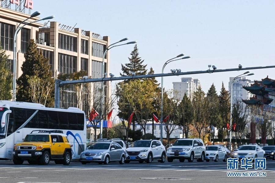 11月17日在呼和浩特市新城區(qū)拍攝的街道上的車(chē)輛。新華社記者 王澤聰 攝
