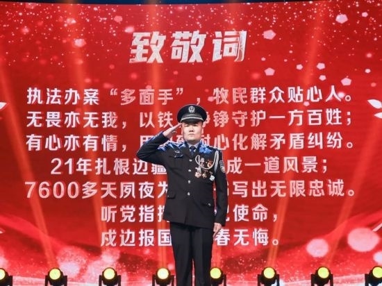 “有選擇就有犧牲,就像我們的愛情一樣,你愛著我們這個(gè)家,我愛著邊境和你,希望我們的生活圓圓滿滿!”在2022年度內(nèi)蒙古自治區(qū)“十大法治事件暨十佳法治人物”頒獎典禮上,黃健對屏幕前的妻子深情講述。這段黃健對妻子多年來默默承受和付出的真情告白,贏得在場全體觀眾雷鳴般的掌聲。
