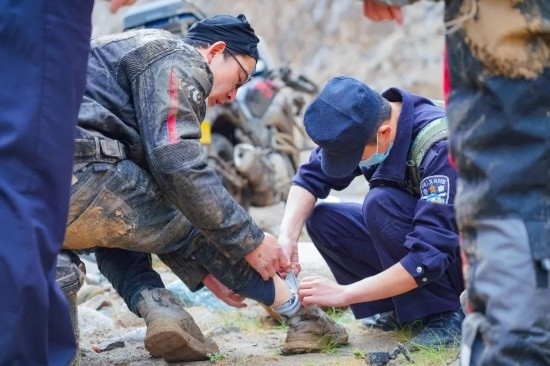 圖為庫地邊境檢查站移民管理警察查看遇險(xiǎn)群眾傷情。