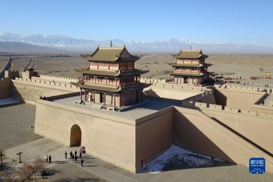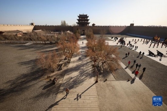 3月4日,游客在嘉峪關(guān)關(guān)城景區(qū)參觀游覽(無人機照片)。