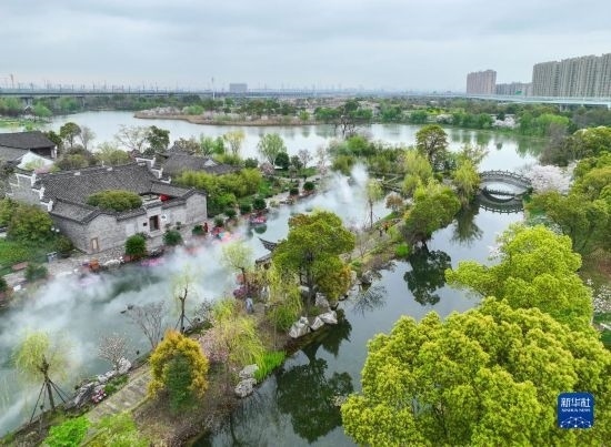 近日,浙江省寧波市植物園內(nèi)的櫻花、海棠、郁金香等競相綻放,與垂柳、古建筑等相互映襯,構(gòu)成一幅幅和美的春景。