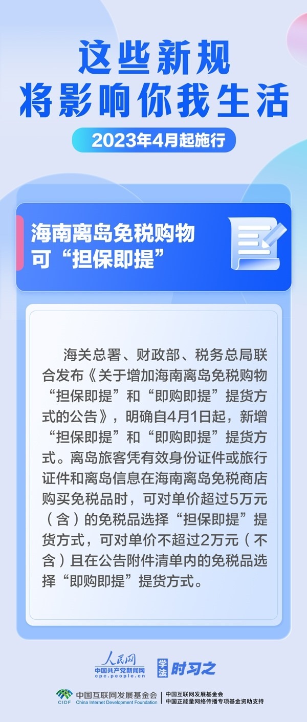 為在法治軌道上推進(jìn)黃河流域生態(tài)保護(hù)和高質(zhì)量發(fā)展提供有力保障,海南離島免稅購(gòu)物可“擔(dān)保即提”“即購(gòu)即提”,啟用第七版出生醫(yī)學(xué)證明……4月,這些新規(guī)施行,將影響你我生活。