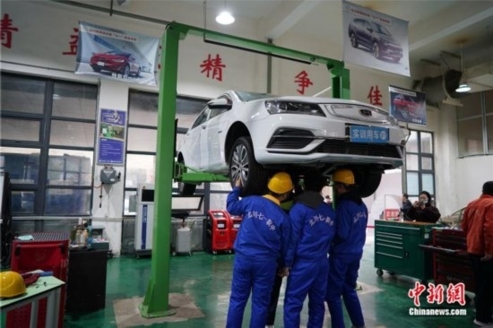 學(xué)生們正在老師指導(dǎo)下進(jìn)行汽車維護(hù)保養(yǎng)、機(jī)械故障診斷等操作。中新網(wǎng)記者 劉湃 攝