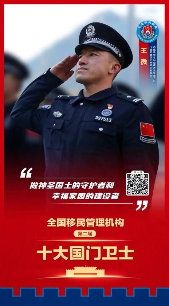 國家移民管理機(jī)構(gòu)十大國門衛(wèi)士每3年評選表彰一次,獲評人員是全國移民管理警察隊(duì)伍中政治立場堅(jiān)定、能力素質(zhì)過硬、工作實(shí)績卓著、紀(jì)律作風(fēng)優(yōu)良、模范作用顯著的先進(jìn)典型,是新時(shí)代移民管理警察的杰出代表。他們忠誠履職、無私奉獻(xiàn),在捍衛(wèi)國家政治安全、維護(hù)國門邊境穩(wěn)定、促進(jìn)經(jīng)濟(jì)社會發(fā)展過程中作出了突出貢獻(xiàn),生動反映了國家移民管理體制改革的豐碩成果,展示了移民管理警察良好精神風(fēng)貌,展現(xiàn)了移民管理機(jī)構(gòu)新形象、新作為。
