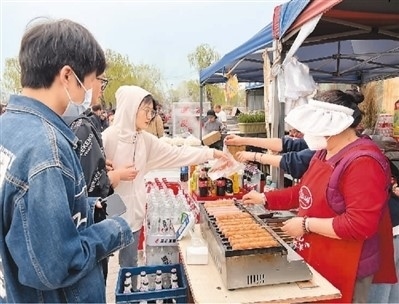 市民在北京市海淀區(qū)上莊水鄉(xiāng)大集上購買食品。蘇明辰攝