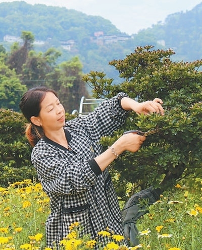 “家家擺盆景,人人學手藝?!比缃?,雙龍村花木盆景產(chǎn)業(yè)種植規(guī)模擴大到了2000余畝,年產(chǎn)值達2000萬元。在此基礎上,當?shù)剡M一步發(fā)展鄉(xiāng)村旅游產(chǎn)業(yè),特色民宿如雨后春筍,雙龍村“山城花冠”的名聲也越叫越響,不僅讓村民在家門口就能就業(yè)、吸引不少在城區(qū)務工的村民返鄉(xiāng)創(chuàng)業(yè),還改善提升了當?shù)氐幕A設施建設水平、林地覆蓋面積,實現(xiàn)了生產(chǎn)、生活、生態(tài)的多贏,走出一條以綠色產(chǎn)業(yè)助力鄉(xiāng)村振興的發(fā)展新路。