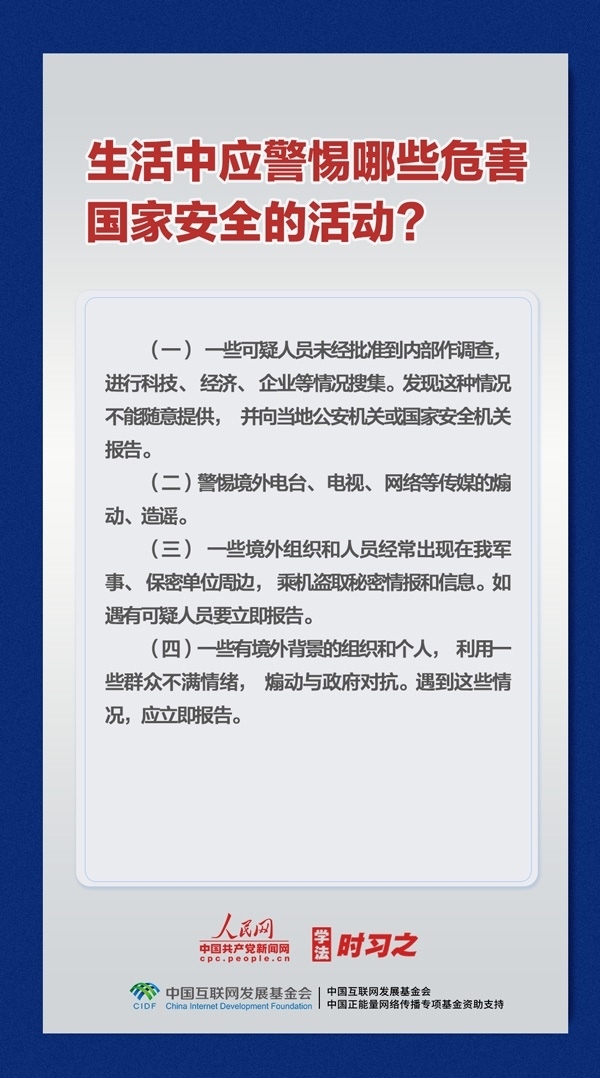 國家安全,共同守護(hù)。如有發(fā)現(xiàn)危害國家安全的行為和線索,請及時(shí)撥打國家安全機(jī)關(guān)舉報(bào)受理電話12339或登錄www.12339.gov.cn網(wǎng)站進(jìn)行舉報(bào)。