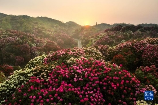 這是連片的百里杜鵑(無人機(jī)照片,2021年3月30日攝)。