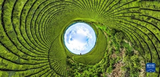 4月4日拍攝的遵義市湄潭縣永興鎮(zhèn)“萬畝茶?!保o人機(jī)全景拼接照片)。