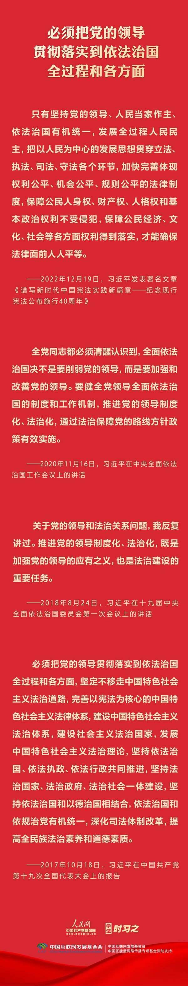 今年是貫徹落實黨的二十大精神的開局之年。中共中央政治局決定從今年4月開始,在全黨自上而下開展學習貫徹習近平新時代中國特色社會主義思想主題教育。習近平法治思想是習近平新時代中國特色社會主義思想的重要組成部分,人民網(wǎng)·中國共產黨新聞網(wǎng)推出學法時習之·學習習近平法治思想系列策劃,本篇聚焦“堅持黨對全面依法治國的領導”。
