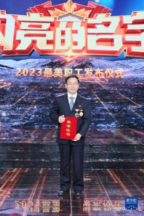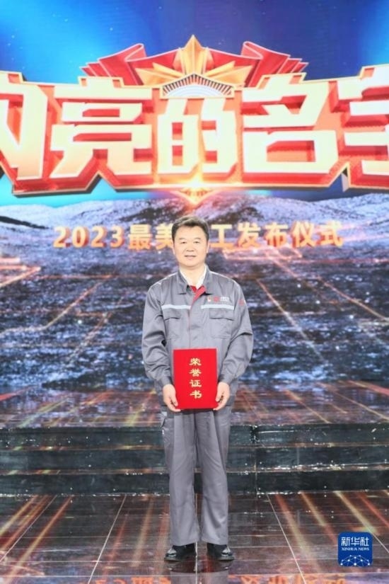 合肥聚能電物理高技術(shù)開發(fā)有限公司車間主任陳建林在“最美職工”發(fā)布儀式上(4月21日攝)。新華社發(fā)(王鑫 攝)