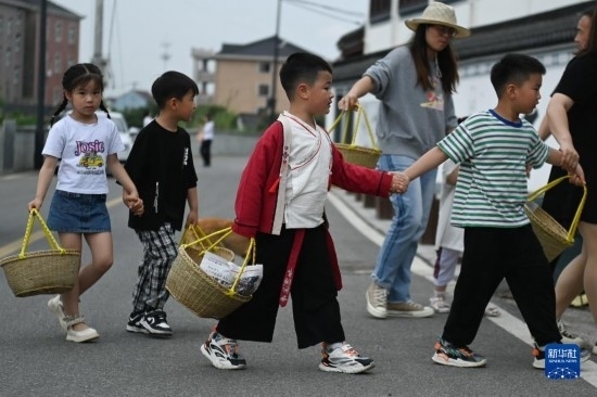 臨近立夏節(jié)氣,浙江省杭州市臨平區(qū)塘棲鎮(zhèn)丁山河村的村民們做米塑“立夏狗”、腌灰鴨蛋、搭土灶蒸“野米飯”等,用江南水鄉(xiāng)傳統(tǒng)的民俗迎接初夏。