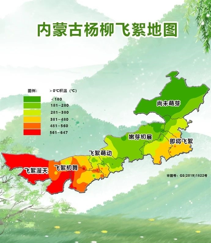 根據(jù)內(nèi)蒙古氣象部門提供的楊柳飛絮地圖可以看出,目前,阿拉善、烏海地區(qū)已經(jīng)進(jìn)入飛絮漫天階段,巴彥淖爾、鄂爾多斯、呼和浩特、包頭地區(qū)已經(jīng)陸續(xù)進(jìn)入飛絮萌動(dòng)階段和飛絮初舞階段,通遼大部、赤峰東南部地區(qū)即將飛絮,其余地區(qū)還處于嫩芽初展和尚未萌芽階段。