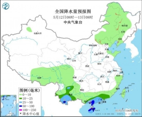 全國降水量預(yù)報(bào)圖(5月12日08時(shí)-13日08時(shí))