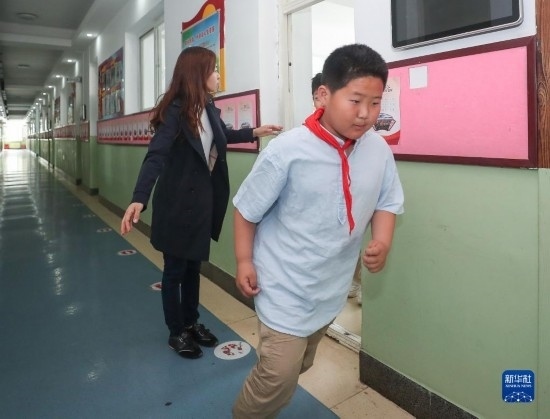 5月12日,沈陽市北塔小學的學生進行室內避險安全演練。