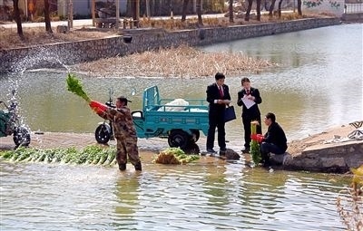 圖③:沂源法院悅莊人民法庭的干警進村對菜農(nóng)進行交易風險提示。(資料圖片)