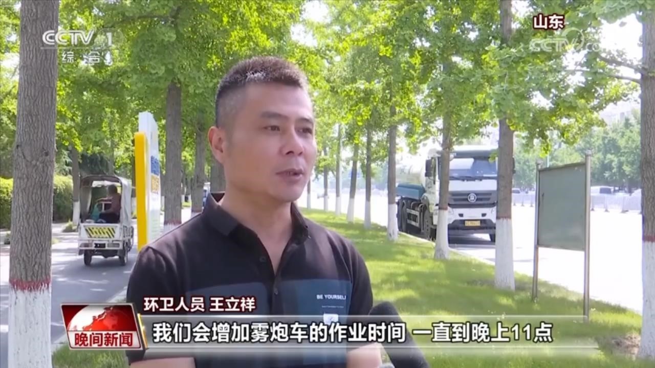 環(huán)衛(wèi)人員 王立祥:如果氣溫連續(xù)升高的話,我們會增加霧炮車的作業(yè)時間,一直到晚上11點。