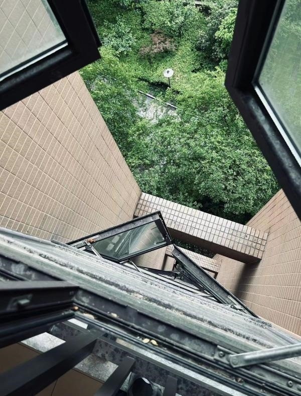10層以上過道窗戶還未安裝護(hù)欄