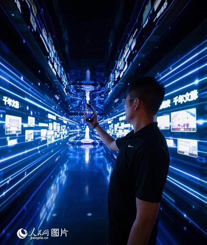 中國旅游日前夕,游客在雄安印象展館內(nèi)參觀體驗(yàn)。人民網(wǎng) 李兆民攝