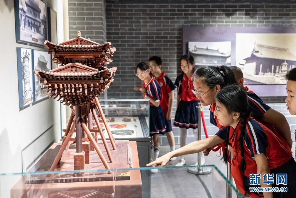 5月17日,呼和浩特市玉泉區(qū)南茶坊小學(xué)學(xué)生在歸化城展示館參觀牌樓微縮模型。新華網(wǎng)發(fā)(丁根厚攝)