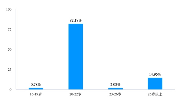 同樣,由于需要一天內(nèi)打卡多個甚至十幾個景點、為了節(jié)省成本而大量采取步行和騎行的“特種兵旅游”需要大量體力,因此集中在年輕人群,調(diào)查結(jié)果顯示有82.18%受訪者年齡段集中在20~22歲,可見大學生人群是對“特種兵旅游”感興趣和參與的主力。