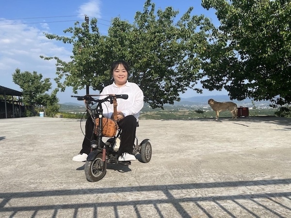 雖然每天需要在輪椅上生活,但李丹并不受限于此。因身體原因無法到學校讀書,她就在家自學,每天翻字典,一個字一個字地去記;銷售有問題,12歲時她就讓父親把自己帶到菜市場,用真誠的微笑和陌生人拉近距離,打開銷路;為給桃子設(shè)計獨一無二的包裝,與漢濱區(qū)殘聯(lián)溝通后,她騎著電動輪椅坐高鐵前往西安學習攝影和畫畫;山路陡峭,輪椅不方便上下山,她就去考了C5駕照,免去父親背她走路的辛勞。面對疾病的糾纏,李丹始終保持積極的心態(tài):“我希望自己的人生是不斷突破的?!?/p>