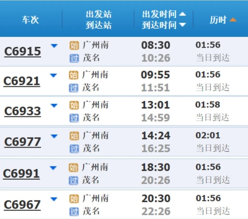 茂名站位于江湛鐵路上,是一個(gè)運(yùn)營(yíng)城際列車和普速鐵路的混合車站。廣州南至茂名的城際列車日常開行45對(duì),周末增加至52對(duì),將茂名到廣州的旅行時(shí)間縮短至2小時(shí)左右,十分方便。