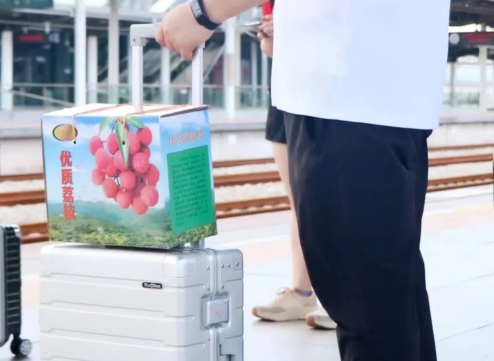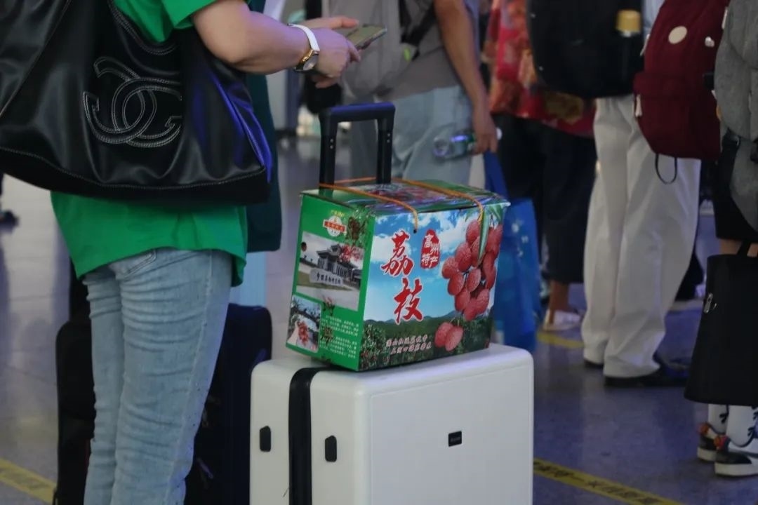 5月20日,隨著中國(guó)國(guó)際熱作產(chǎn)業(yè)大會(huì)暨第七屆中國(guó)荔枝龍眼產(chǎn)業(yè)大會(huì)在茂名正式開幕,茂名站也熱鬧起來(lái)。不少乘車旅客提著泡沫箱、禮盒或塑料袋,把嶺南佳果帶回家。