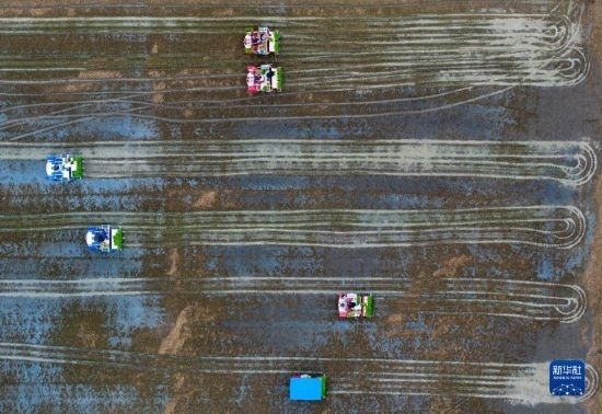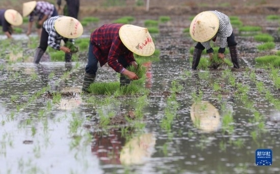 當(dāng)日,江蘇省淮安市洪澤區(qū)岔河鎮(zhèn)舉行第八屆禾采插秧節(jié)活動(dòng),村民和游客在稻田里體驗(yàn)農(nóng)耕樂(lè)趣,感受田園生活。