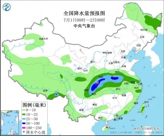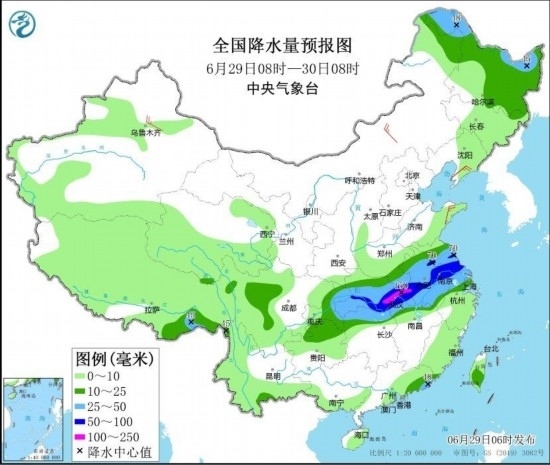 6月29日至30日,四川盆地、黃淮南部、江淮、江漢、江南北部、西南地區(qū)東部及東北地區(qū)等地有中到大雨,部分地區(qū)暴雨,湖北東部局地大暴雨,上述地區(qū)局地伴有明顯短時(shí)強(qiáng)降水、雷暴大風(fēng)或冰雹等強(qiáng)對流天氣。