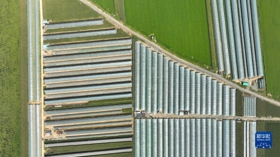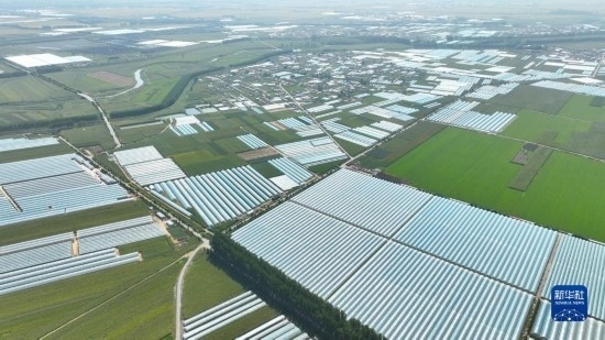 9月7日拍攝的燈塔市柳條寨鎮(zhèn)遼峰葡萄核心產(chǎn)區(qū)的葡萄種植大棚(無人機(jī)照片)。