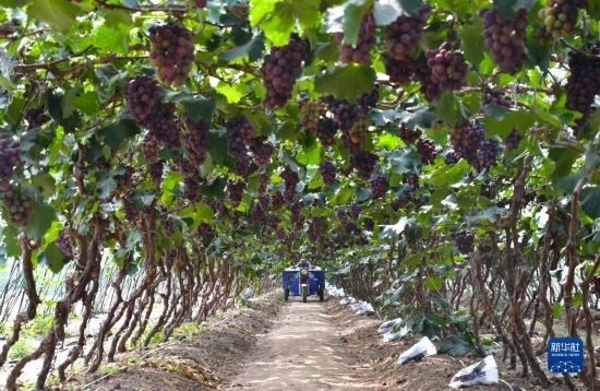 近日,遼寧省燈塔市種植的遼峰葡萄喜迎豐收。燈塔市出產(chǎn)的遼峰葡萄遠(yuǎn)近聞名,目前種植面積約1萬畝。當(dāng)?shù)匾研纬善咸雅嘤?、種植、銷售、倉儲、加工相關(guān)產(chǎn)業(yè)鏈,葡萄是當(dāng)?shù)剞r(nóng)民致富增收的特色產(chǎn)業(yè)。
