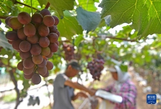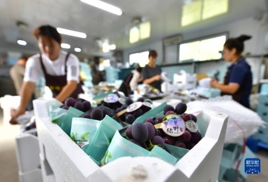 近日,遼寧省燈塔市種植的遼峰葡萄喜迎豐收。燈塔市出產(chǎn)的遼峰葡萄遠(yuǎn)近聞名,目前種植面積約1萬畝。當(dāng)?shù)匾研纬善咸雅嘤⒎N植、銷售、倉儲、加工相關(guān)產(chǎn)業(yè)鏈,葡萄是當(dāng)?shù)剞r(nóng)民致富增收的特色產(chǎn)業(yè)。