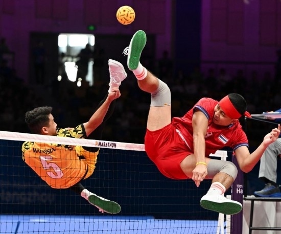 杭州亞運(yùn)會(huì)藤球男子單組團(tuán)體決賽現(xiàn)場(chǎng)。新華社記者 陳鐘昊 攝