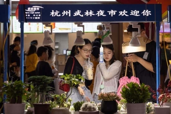 9月29日,人們?cè)诤贾菸骱叺奈淞忠故杏^光選購(gòu)。新華社發(fā)(伊凡 攝)