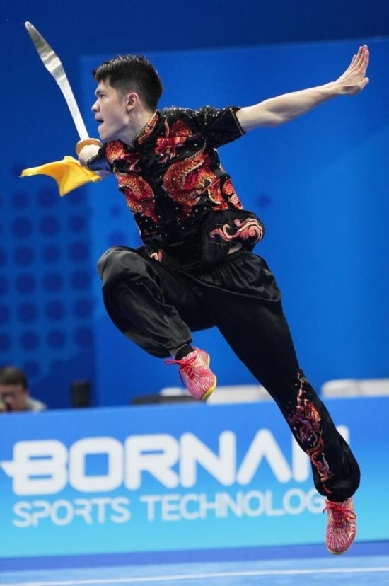 9月27日,馬來(lái)西亞選手陳思衛(wèi)在刀術(shù)比賽中。新華社記者 李一博 攝