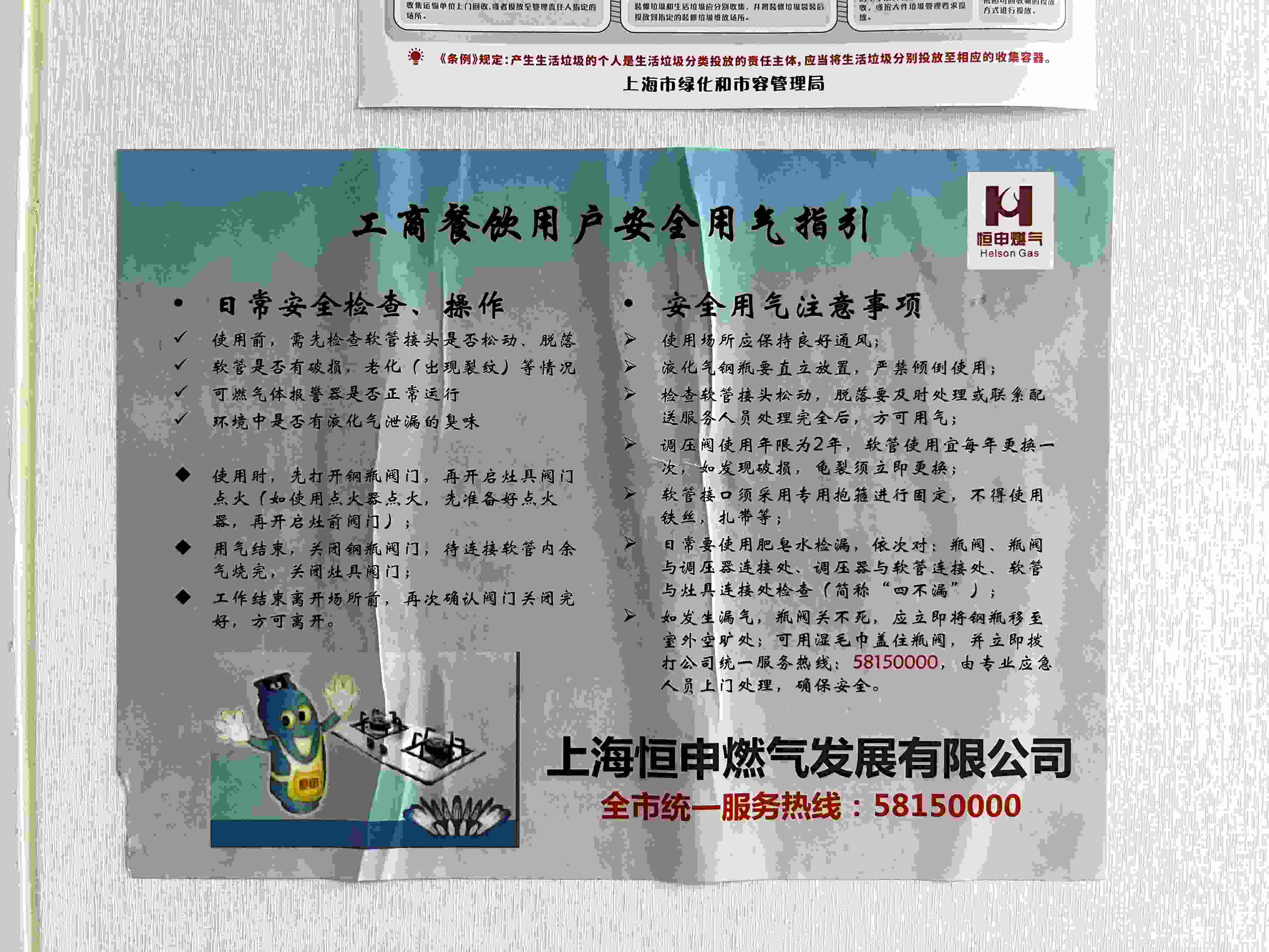 燃?xì)夤驹谏啼亙?nèi)張貼的安全用氣指引
