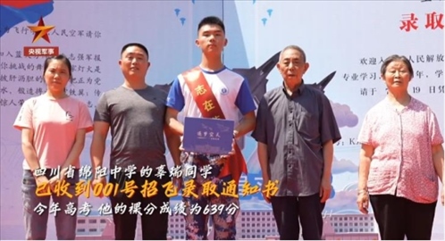 2023年度空軍首批招飛錄取通知書發(fā)放。收到001號(hào)錄取通知書的是四川省綿陽中學(xué)的辜瑞同學(xué)。今年高考,他的裸分成績(jī)?yōu)?39分,有望入圍空軍與北京大學(xué)、清華大學(xué)、北京航空航天大學(xué)聯(lián)合培養(yǎng)“雙學(xué)籍”飛行學(xué)員預(yù)選對(duì)象。