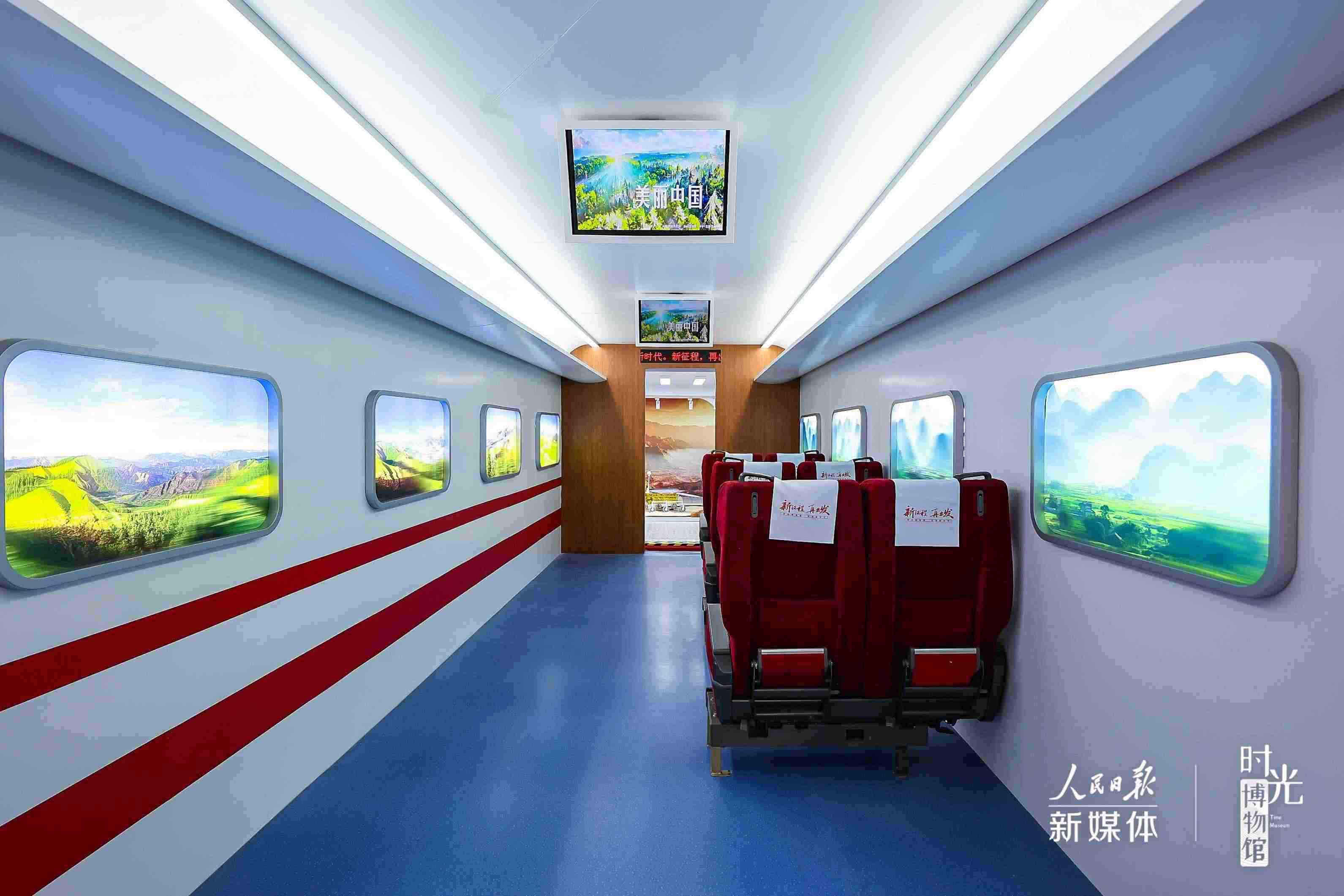走進這座由兩輛雙層雙擴容特裝巨型箱體車改裝的“紅房子”里,“復興號”高鐵、“天宮”空間站、古今融合的《新千里江山圖》一一映入眼簾。可涂裝的盾構(gòu)機、可云游的長城、AR觀影……“實物+影像+互動體驗”組成的展區(qū),呈現(xiàn)著新時代十年的非凡成就。