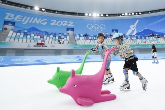 7月1日,小朋友在國家速滑館“冰絲帶”游玩。新華社記者 鞠煥宗 攝